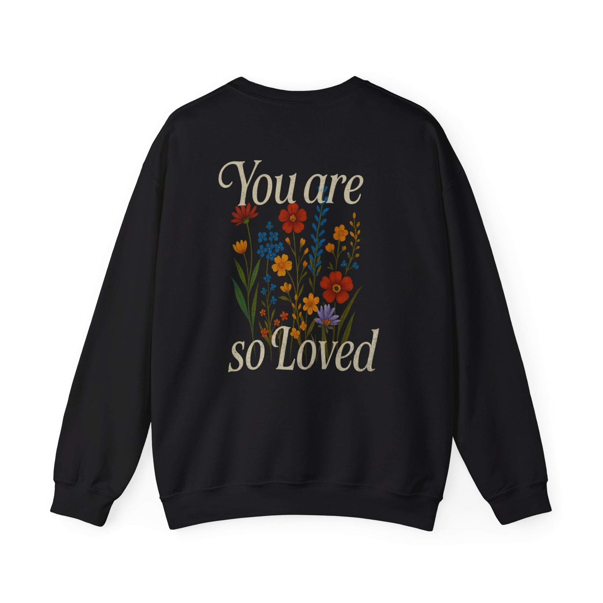 You Are Loved Floral Crewneck Sweatshirt, Cozy Unisex Pullover for Gifting, Inspirational Apparel, Comfort Everyday Wear, Self-Love Everyday